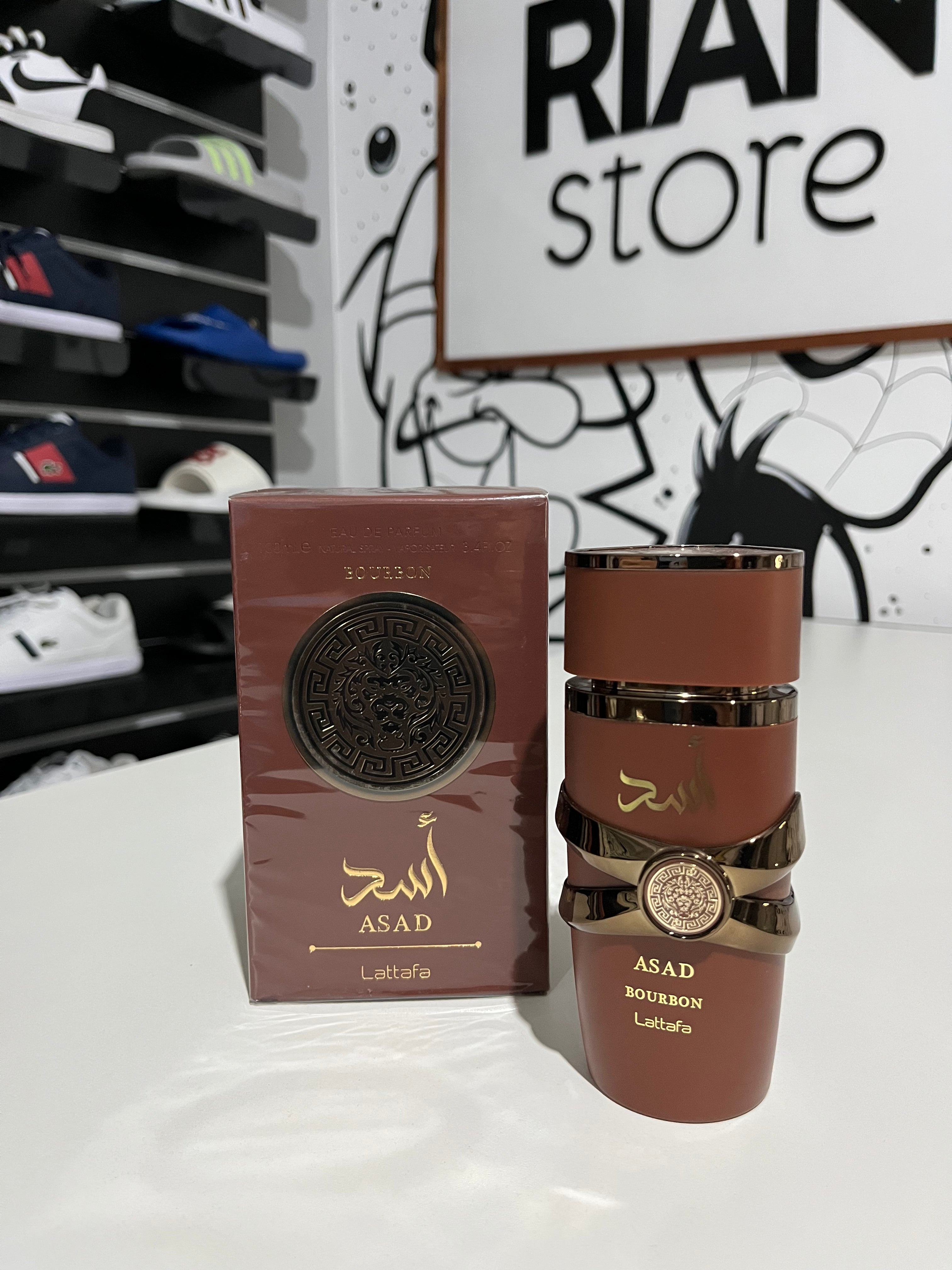 Asad Bourbon de Lattafa Perfumes é um perfume Oriental Especiado Masculino. Esta é uma nova fragrância. Asad Bourbon foi lançada em 2025. As notas de topo são: Lavanda, Ameixa Mirabelle e Pimenta Rosa. As notas de coração são: Cacau, Noz-moscada e Davana. As notas de fundo são: Baunilha de Bourbon, Âmbar e Vetiver.