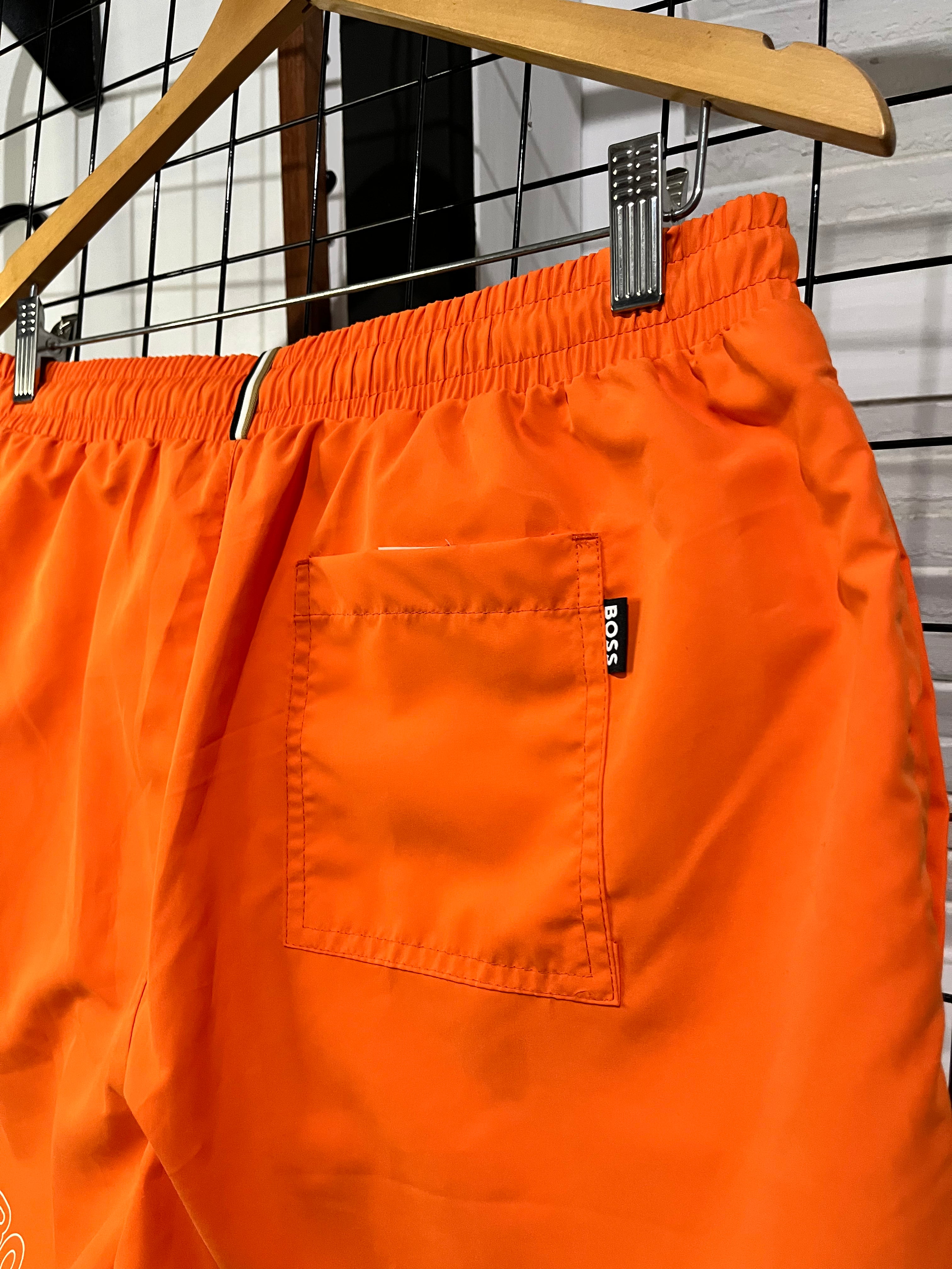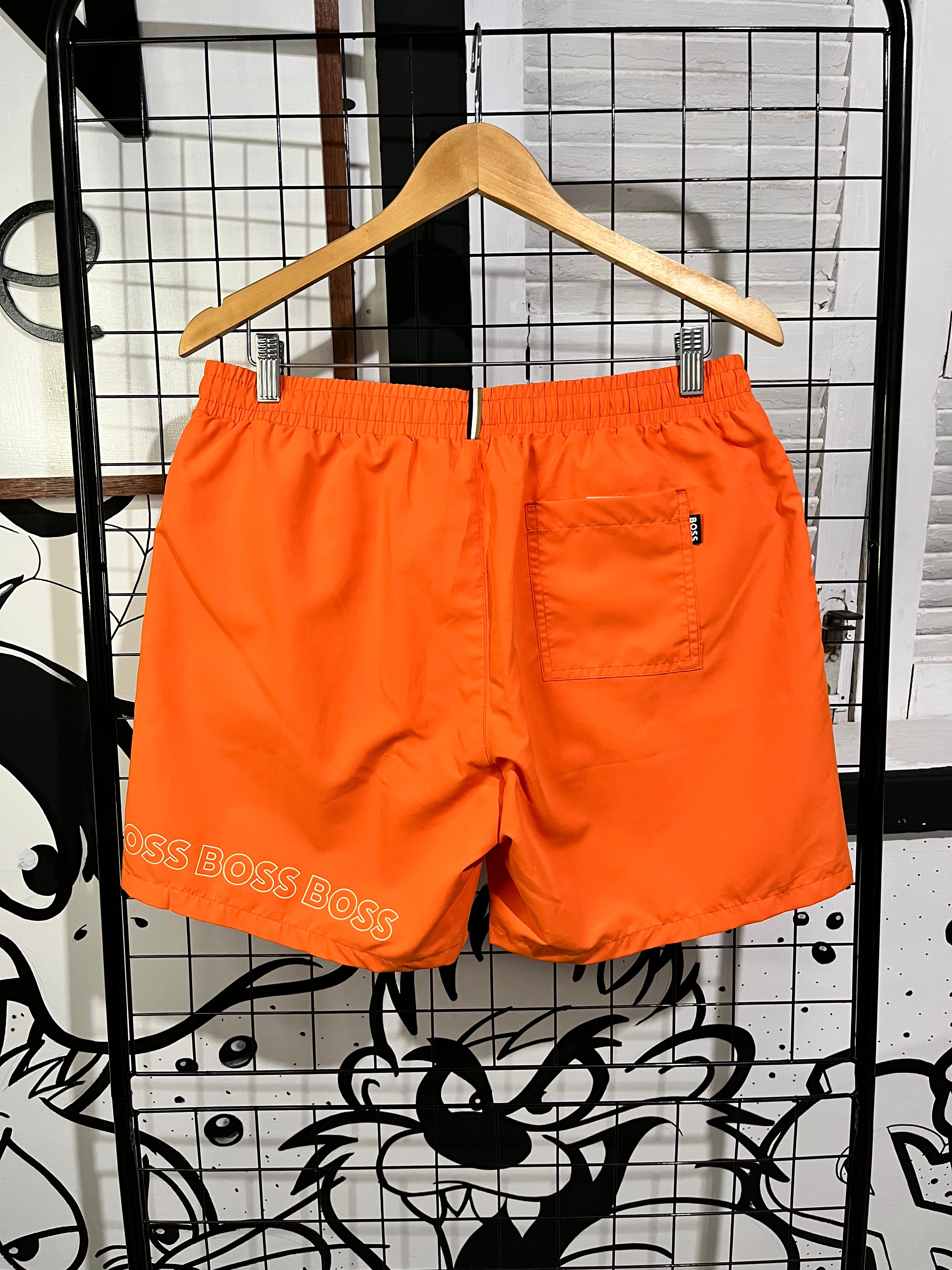 BOSS calção de banho masculino com logotipo vertical padrão