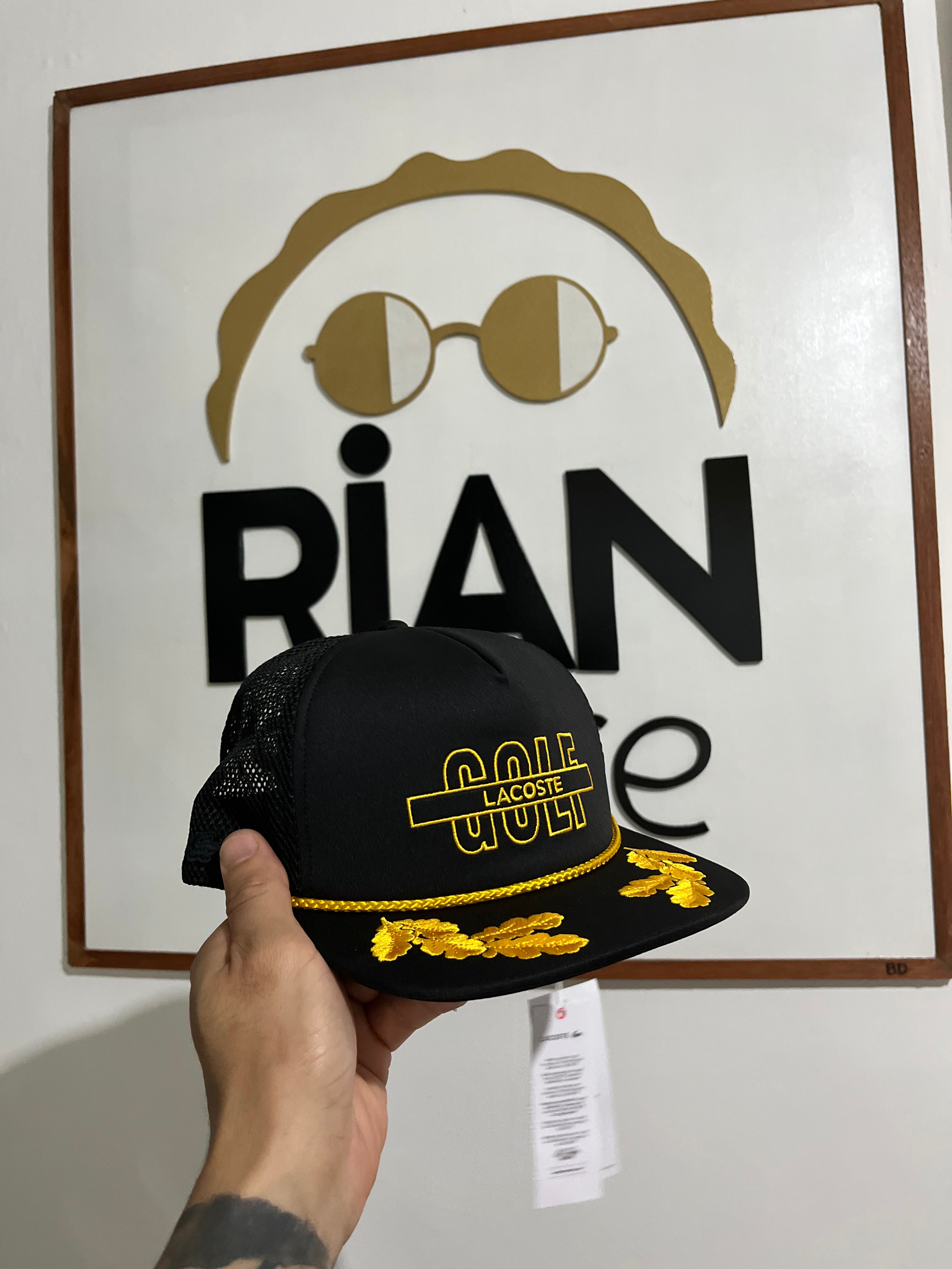 Seja destaque com o Boné Aba Reta da Lacoste confeccionado em Neoprene, para isolamento térmico, e Tela, para ventilação adequada. Uma combinação de dois materiais especiais projetados para o seu conforto, qualidade e estilo. Para práticas esportivas que exigem proteção ou para compor um look descontraído e estiloso, o Boné Aba Reta da Lacoste pode ser integrado ao seu visual de forma fácil, garantindo estilo e personalidade. Seus detalhes dourados fazem com que a peça seja ideal para compor um visual ousado com contraste de cores e estilos, ao mesmo tempo que é prático e funcional para ser o clássico companheiro do seu treino diário. Com detalhe bordado dourado na aba e logo Lacoste Golf na parte frontal, a peça representa um estilo esportivo e moderno, sem perder a elegância. Já a tira de ajuste personalizado na parte posterior oferece conforto e proteção na medida certa. O clássico crocodilo da Lacoste assina a originalidade em sutil tom sobre tom na lateral do acessório. Confira todos os detalhes do Boné Aba Reta em Neoprene e Tela com Bordado Dourado: Poliéster reciclado feito com sobras de tecidos Tira ajustável em silicone atrás Crocodilo tom sobre tom Poliéster (87%), Elastano (13%) A Boné Lacoste Golf Embroidered Black, lançada em 15/08/2025 na cor preto, já está disponível. Compre com confiança e garantia de originalidade!
